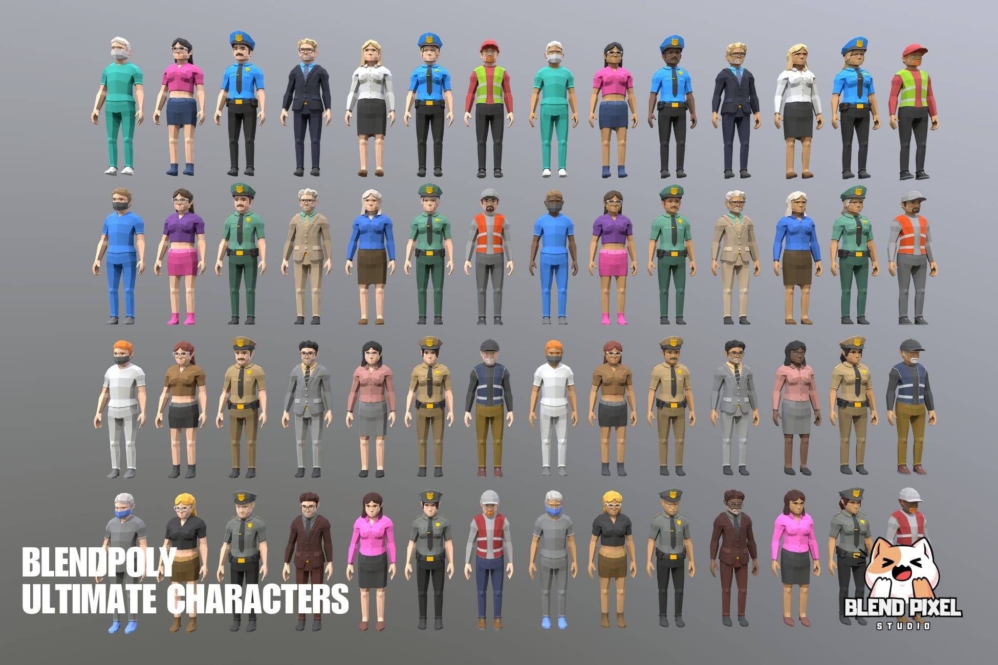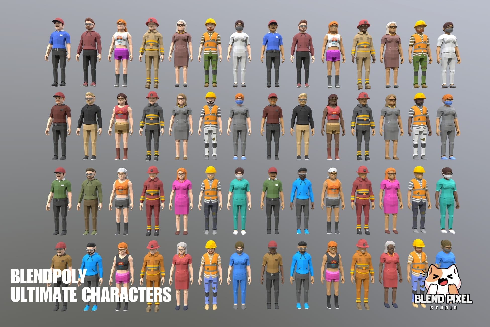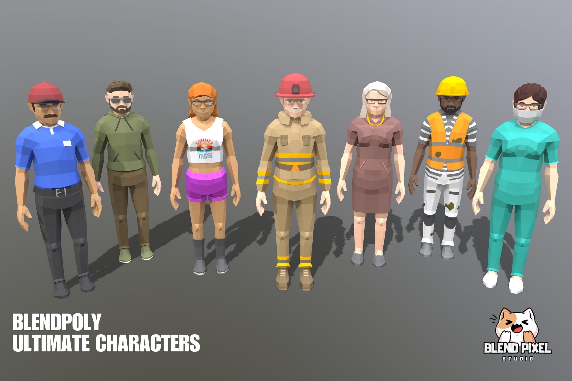Blendpoly City Characters is a comprehensive low-poly asset pack ideal for AR, VR, and game development. This package includes 34 unique characters, over 400 skins, and 2 demo scenes, making it perfect for bringing your game world to life.