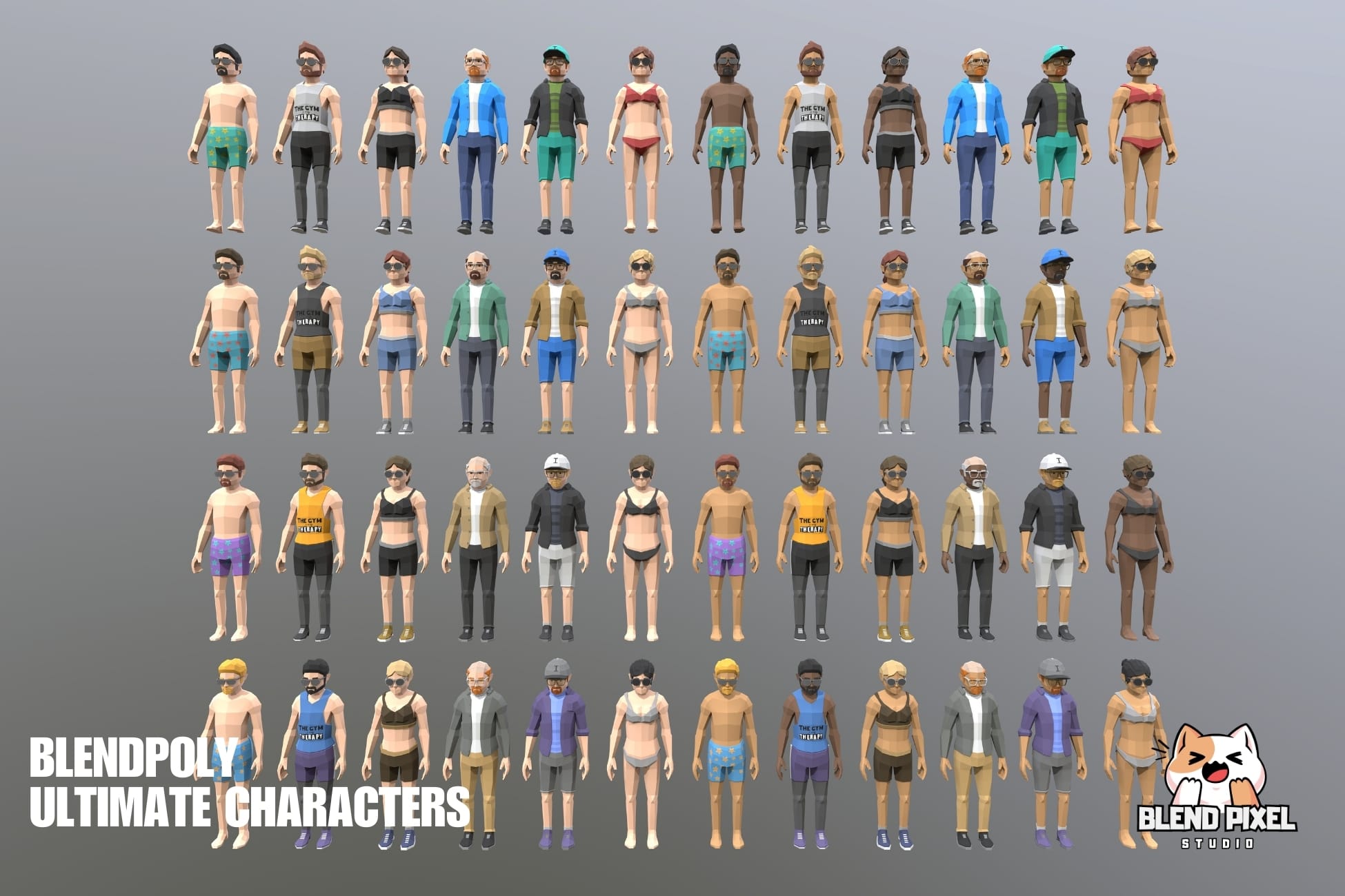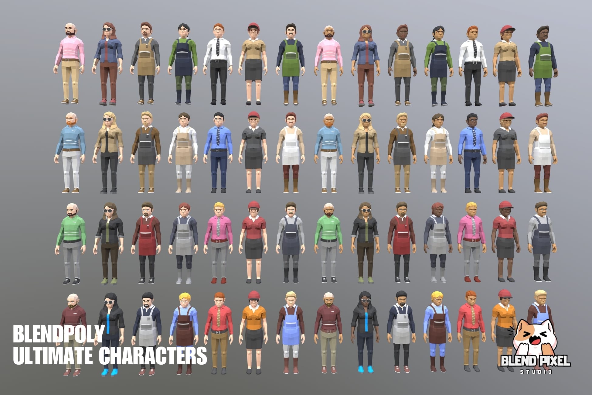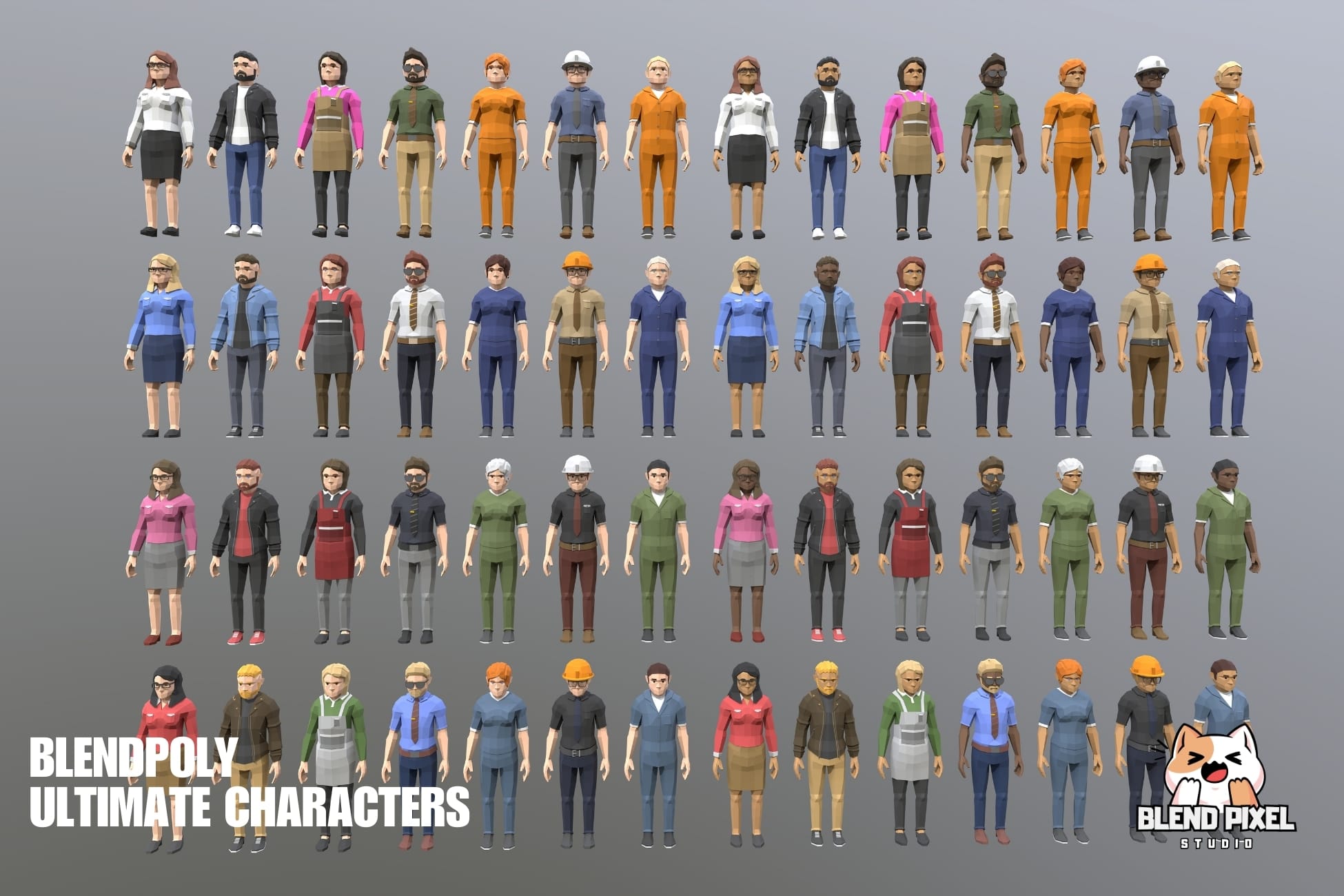 Blendpoly City Characters is a comprehensive low-poly asset pack ideal for AR, VR, and game development. This package includes 34 unique characters, over 400 skins, and 2 demo scenes, making it perfect for bringing your game world to life.